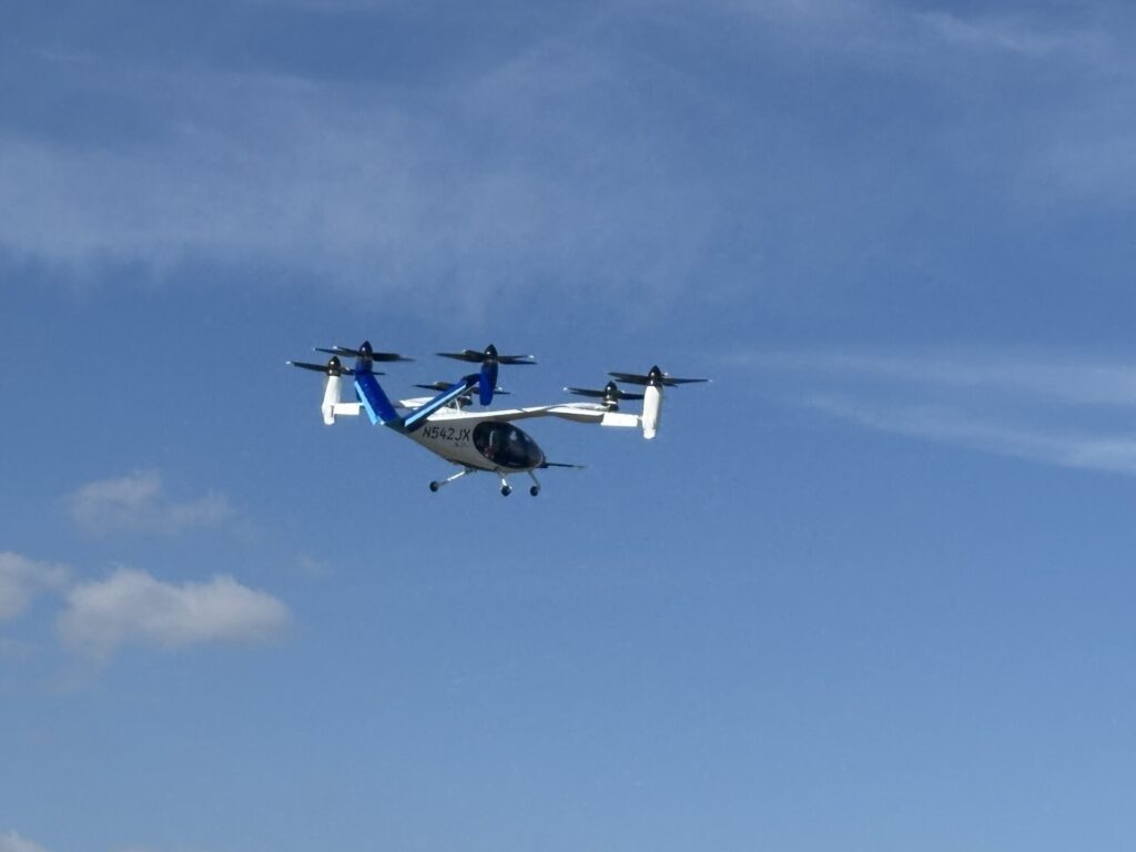 空飛ぶ車は、ヘリコプターのような大きな音や風圧を想像していましたが、実際には非常に静かで、スムーズな発着陸が印象的でした。