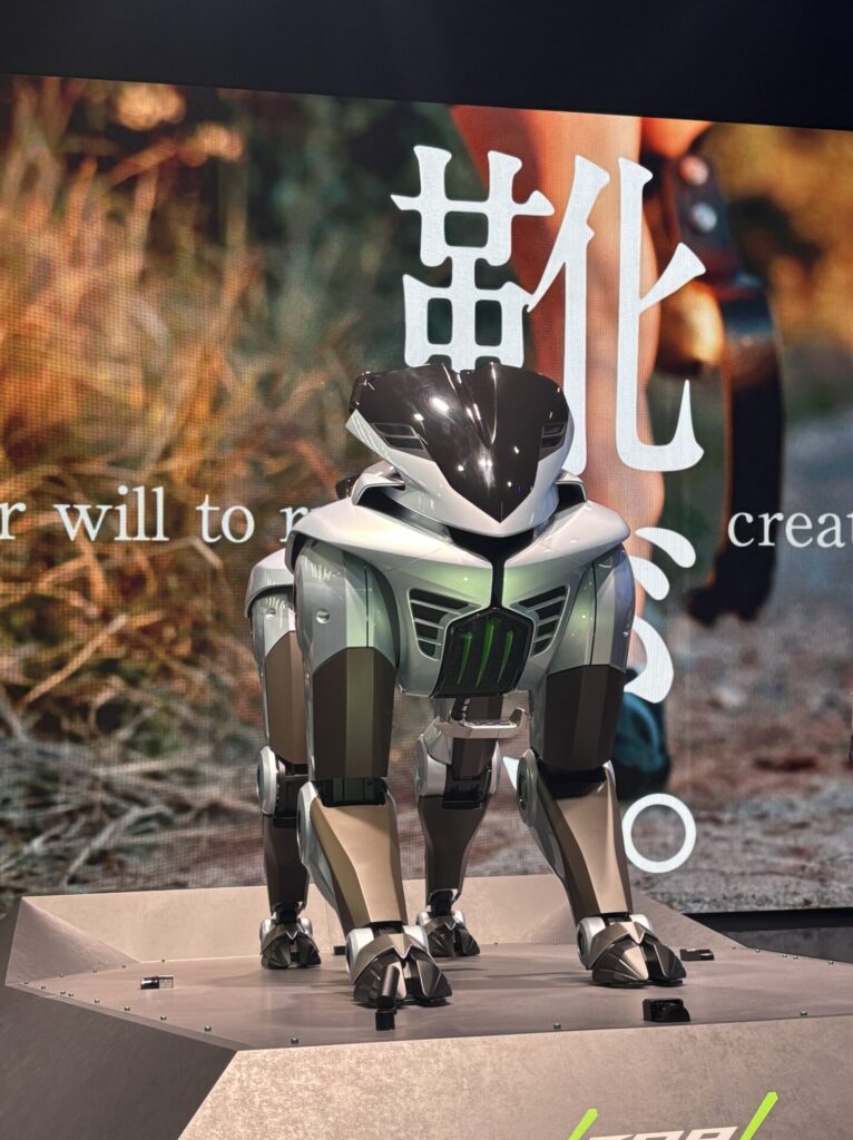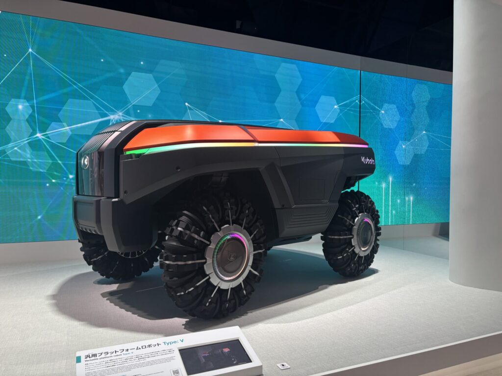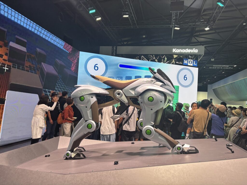 舗装されていない道でも走れるバイクのような乗り物は、未来の移動手段というより、災害時やインフラが整っていない地域での実用を強く意識した展示だと感じました。