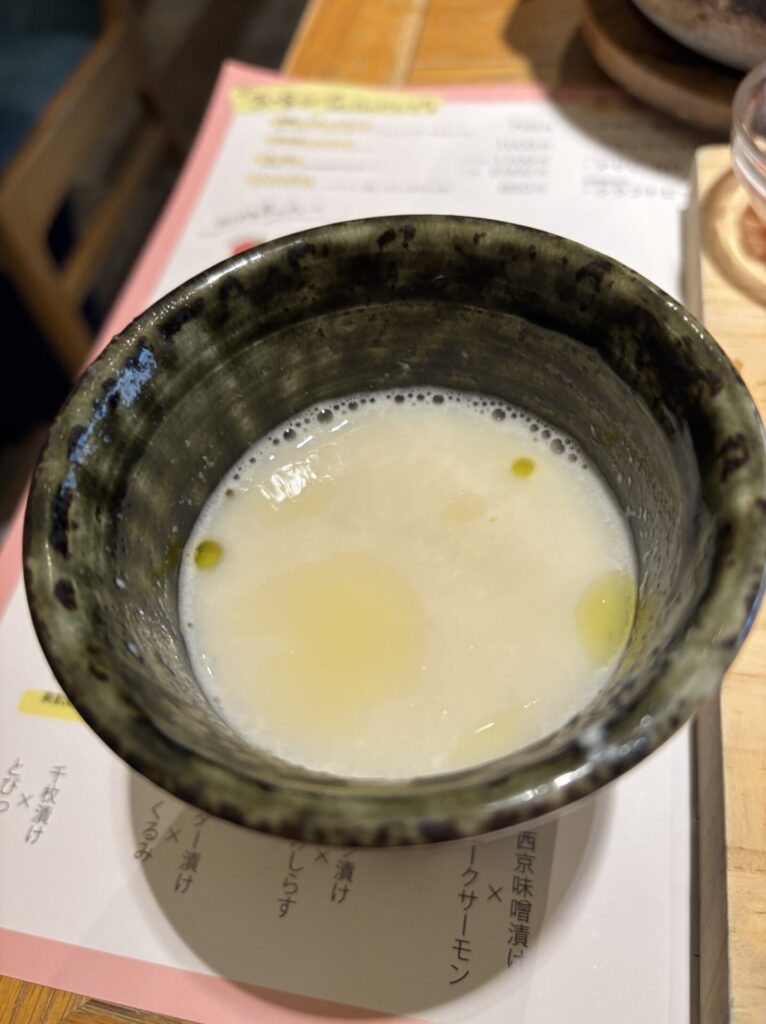The side dishes were equally creative: pickles made with herbs and vinegar, and kiriboshi daikon mixed with basil, blending Japanese and Western flavors in a natural way.