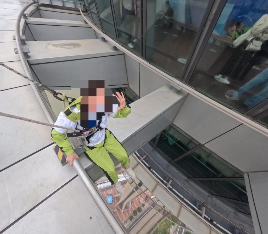 バンジージャンプやスカイジャンプなどのアクティビティもありますが、今回体験したスカイウォークは、高さ233mのタワー外周を歩く特別な体験でした。