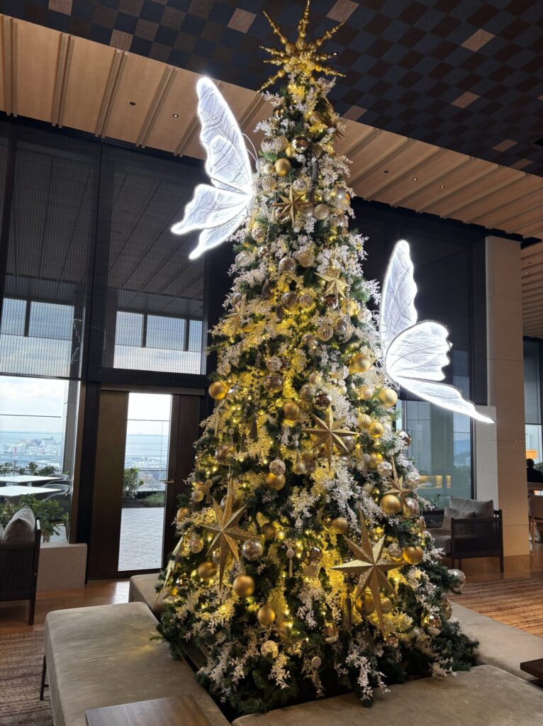 キラキラと飾られたクリスマスツリーがお出迎え